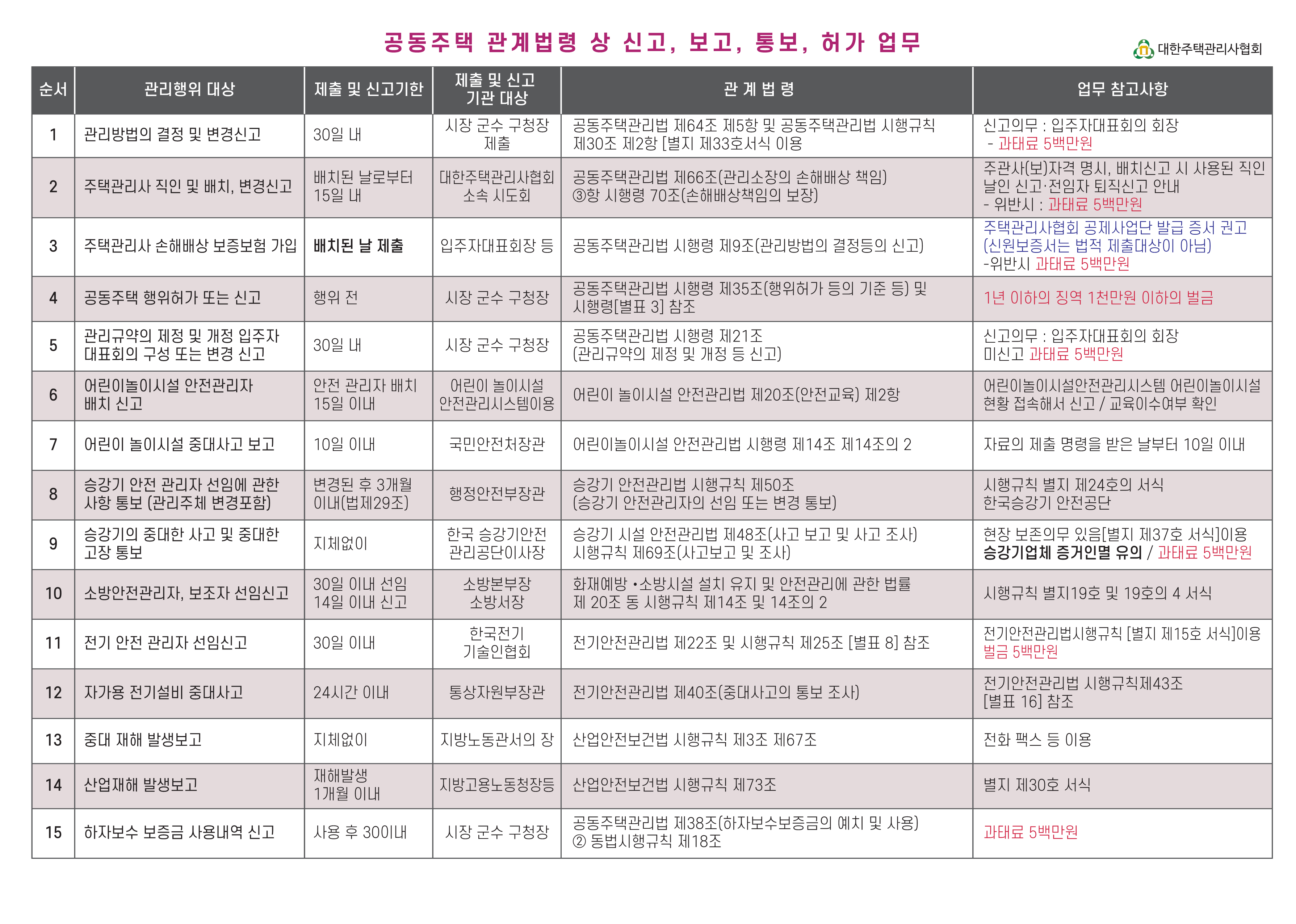 공동주택 관계법령 상 신고, 보고, 통보, 허가업무